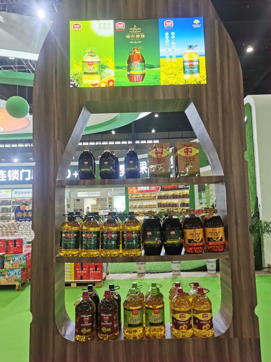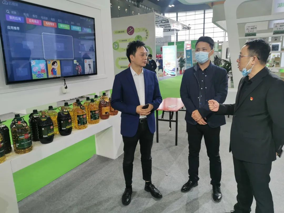 濃郁純香的芝麻油,清亮酸爽的白醋,清香四溢的菜籽油…,第二十三屆中國(guó)中部(湖南)農(nóng)業(yè)博覽會(huì)長(zhǎng)康展廳前齊全綠色的糧油產(chǎn)品吸引了眾多顧客的駐足。